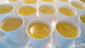 Hazırladığımız bu kemik suyumuzu isterseniz tüm marketlerde bulabileceğiniz kemik suyu için özel dizayn edilmiş poşetlere yada kağıt bardaklara boşatabilirsiniz. Ben kağıt bardak kullanıyorum. 12-15 arası bardak gitmektedir. Soğuyunca buzdolabı yada derin dondurucu dolaplarımıza kaldıralım. Hazırladığımız bu müthiş lezzetten kemik suyu çorba yapabilir afiyetle tüketebiliriz. Bebeklerimize ve çocuklarımıza yedirebiliriz.